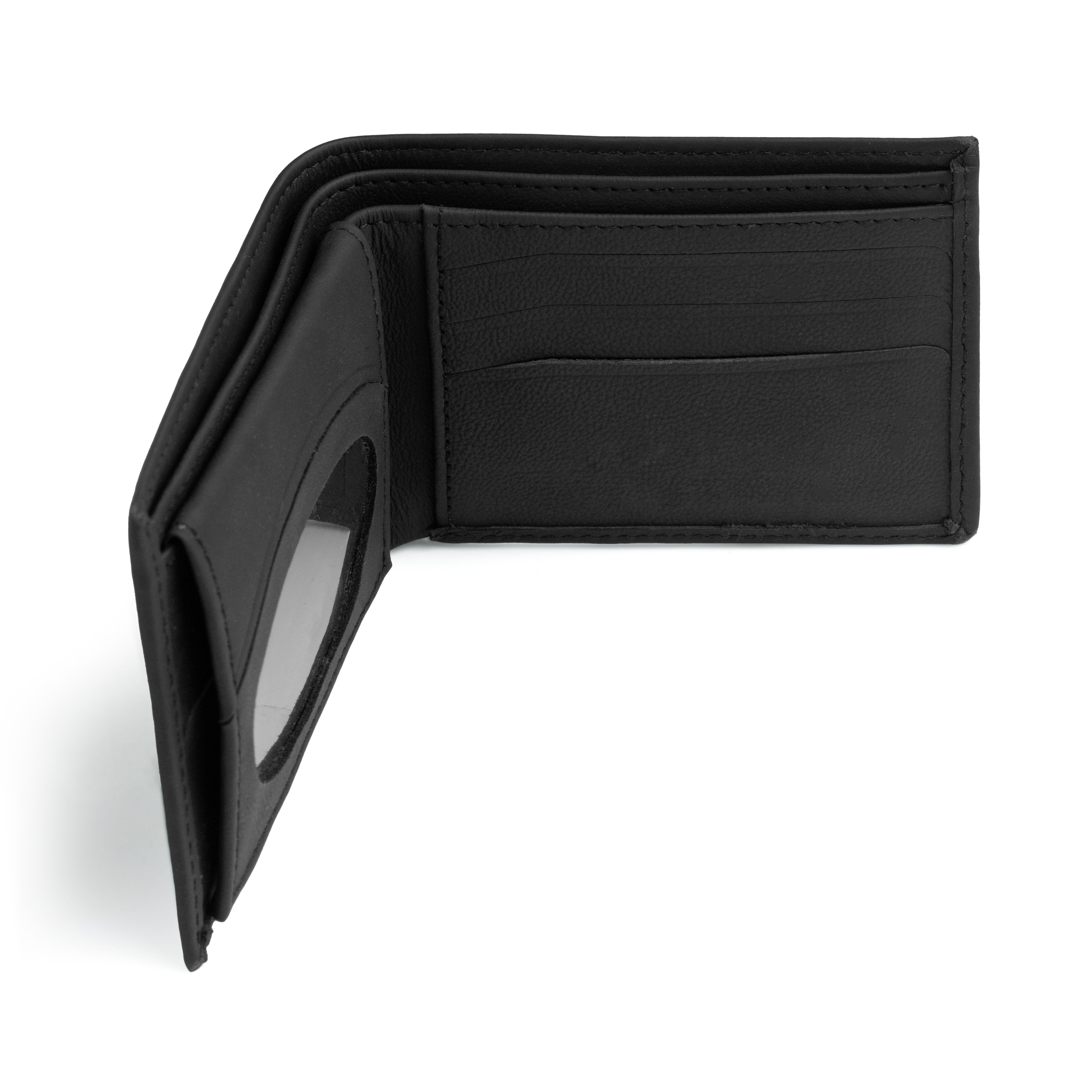 Step into sophistication with our Black Leather Bifold Wallet, the ultimate fusion of style and practicality. Our wallet combines premium craftsmanship with affordability, ensuring you get the best value for your money. Featuring a convenient ID window, it offers easy access to your identification, adding a touch of convenience. Shop now and experience the luxury of our Black Leather Bifold Wallet at a convenient price.