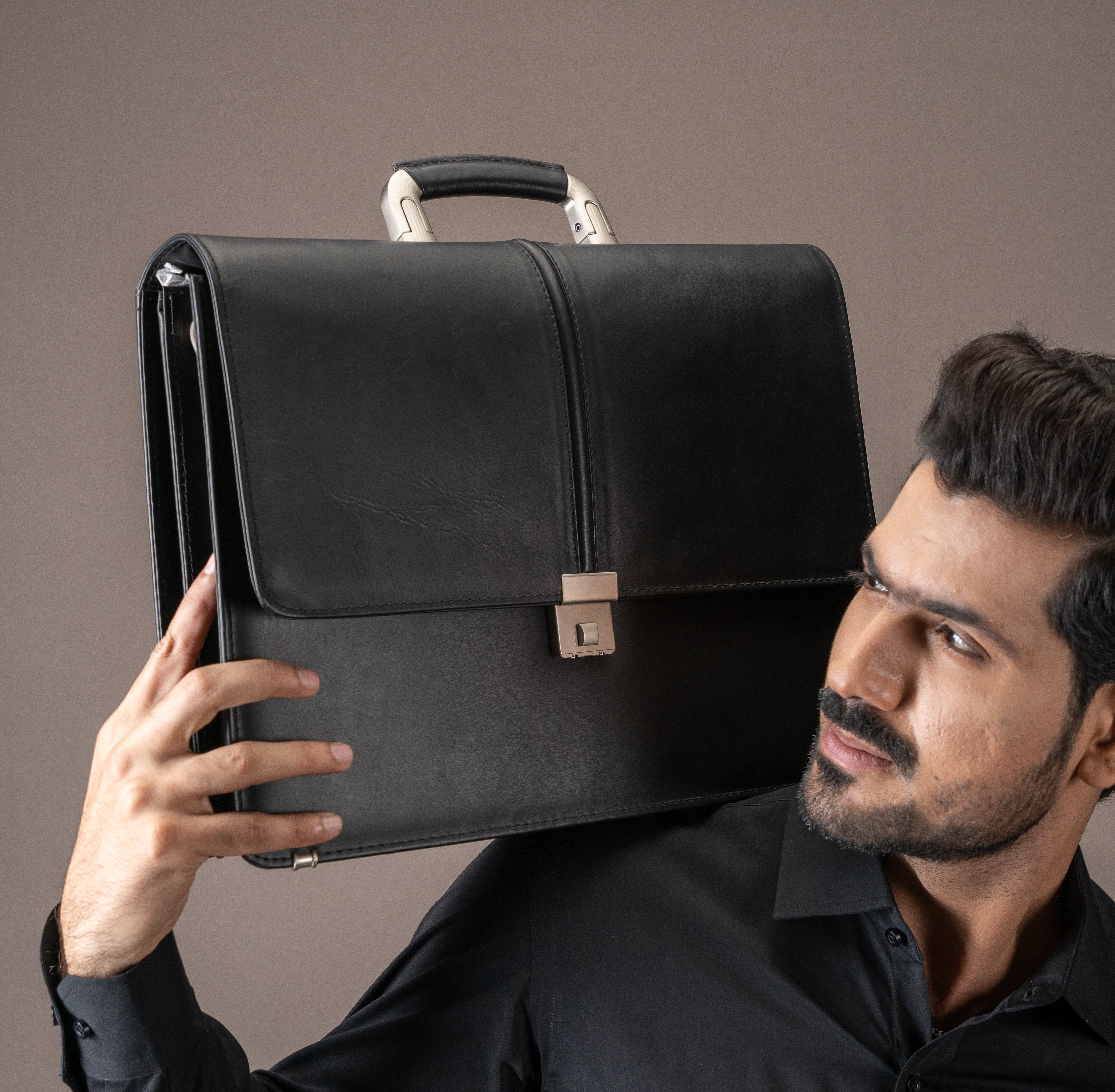Presenting the Black leather Laptop Bag, meticulously crafted from premium materials for durability and sophistication. Designed with practicality in mind, it features ample storage compartments and comfortable handles, making it an essential accessory for professionals on the move.