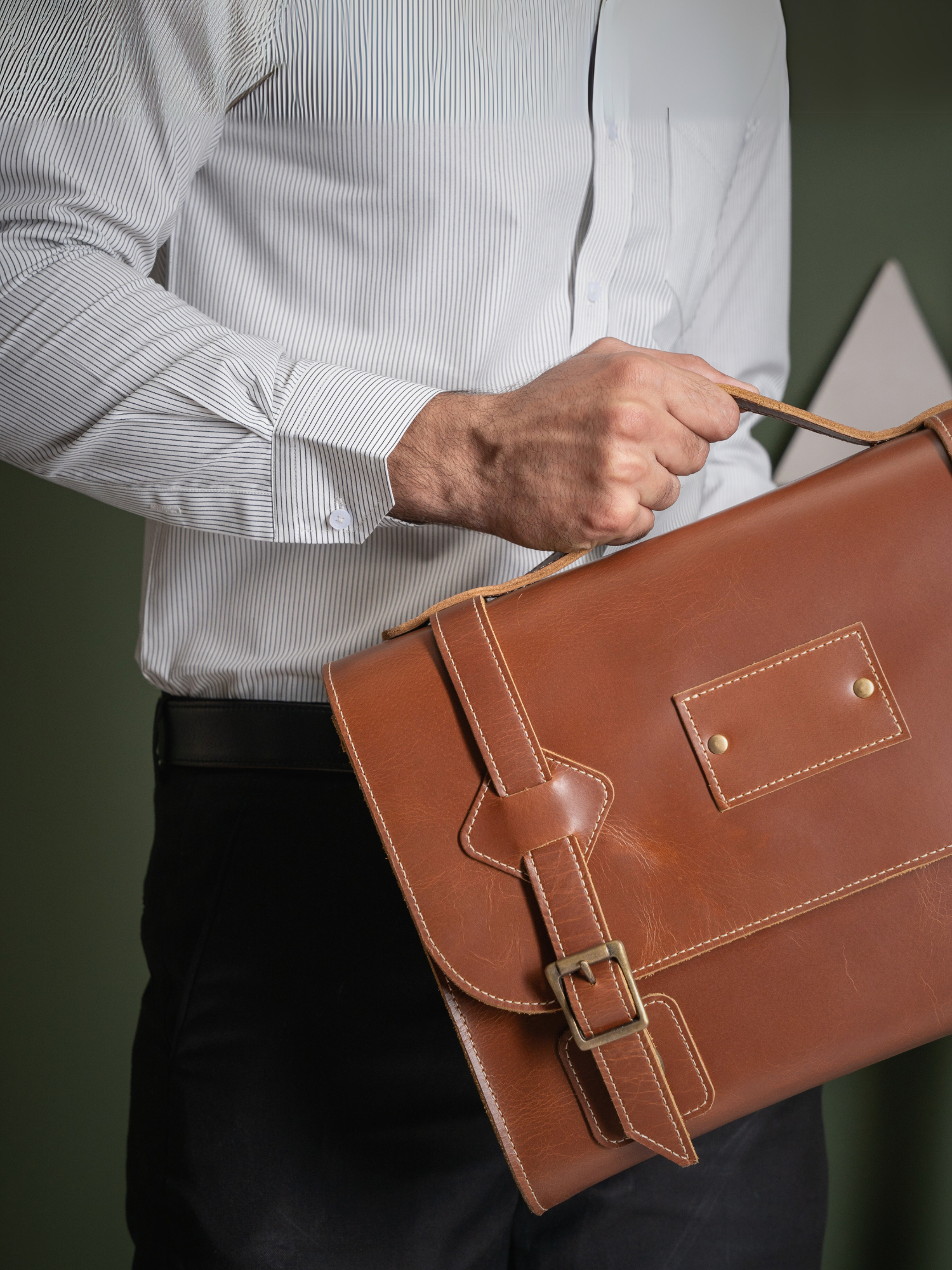 The Dune Laptop Bag is made from genuine tan brown cow leather. Its relaxed yet refined style fits perfectly into both creative routines and daily tasks, making it ideal for modern professionals. It features a 2-buckle lock, one main compartment, a charger pocket, two small pockets for your essentials, and a detachable handle for added convenience.