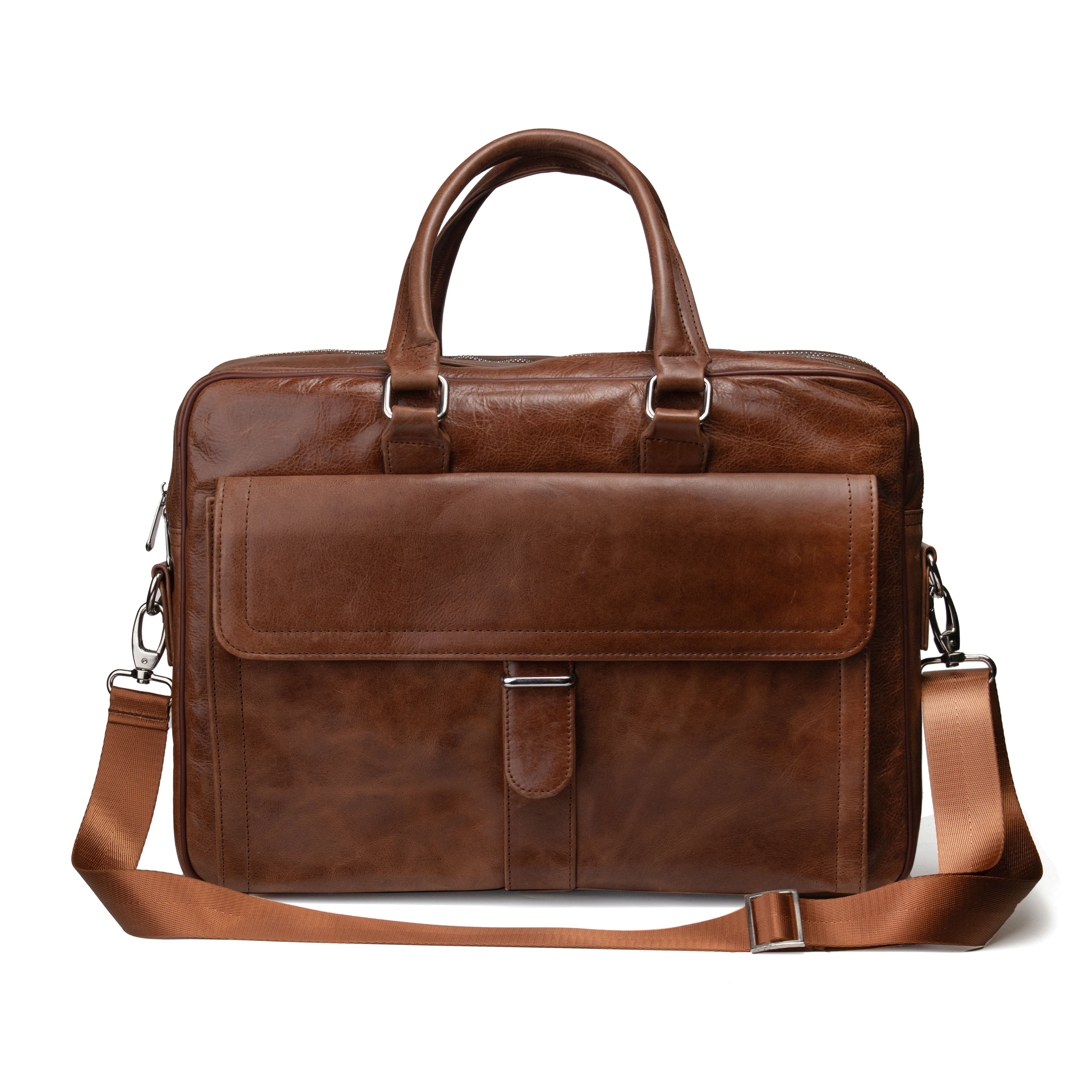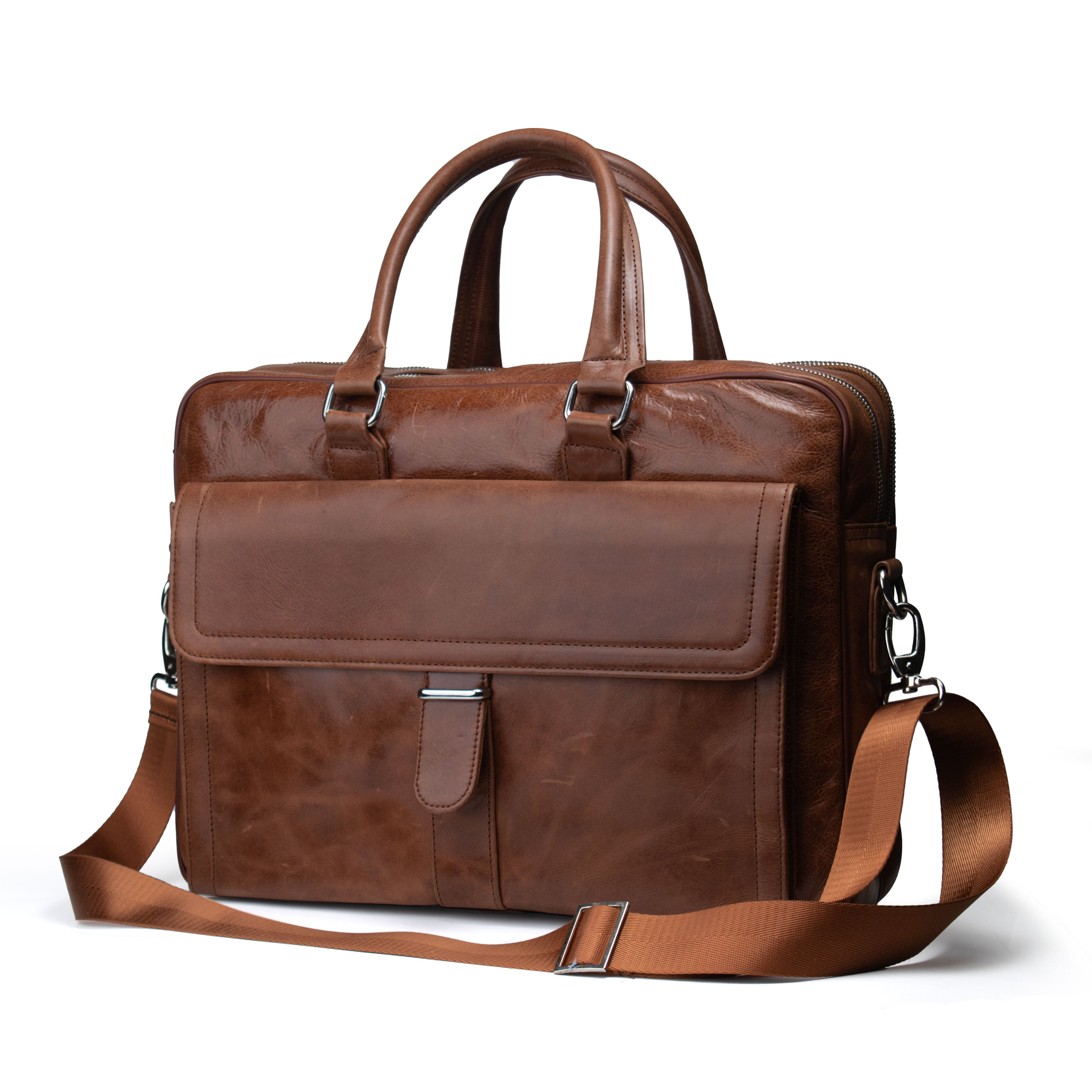 Stay organized and stylish with our Huston Brown Laptop Bag. It features two spacious main zipper compartments for easy separation of your essentials. A dedicated charger pocket and three additional internal pockets keep everything in place, while a quick-access back pocket adds convenience. The front magnetic pocket offers both elegance and ease. Water-resistant to shield your gear, and finished with a detachable, comfortable handle for versatile carrying.