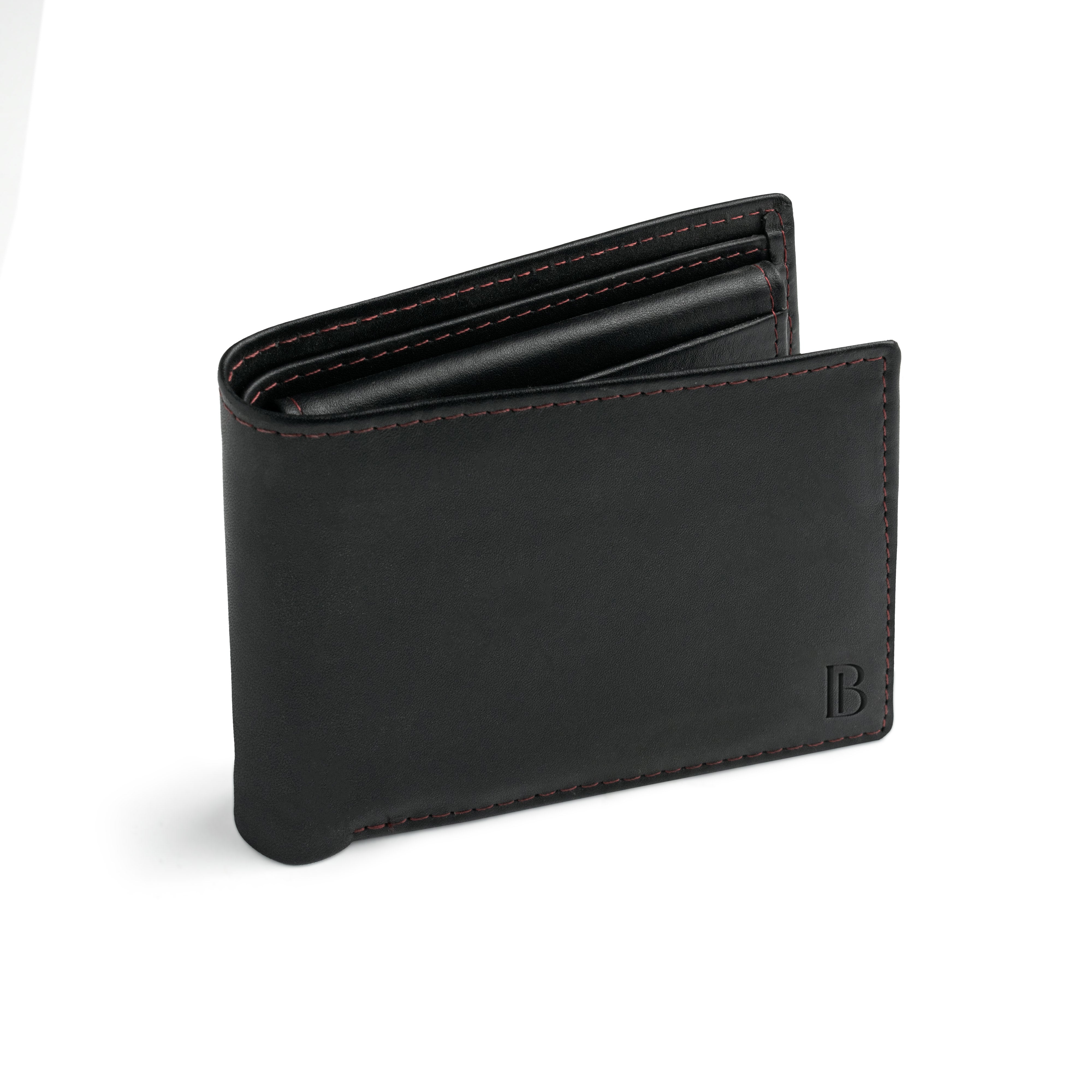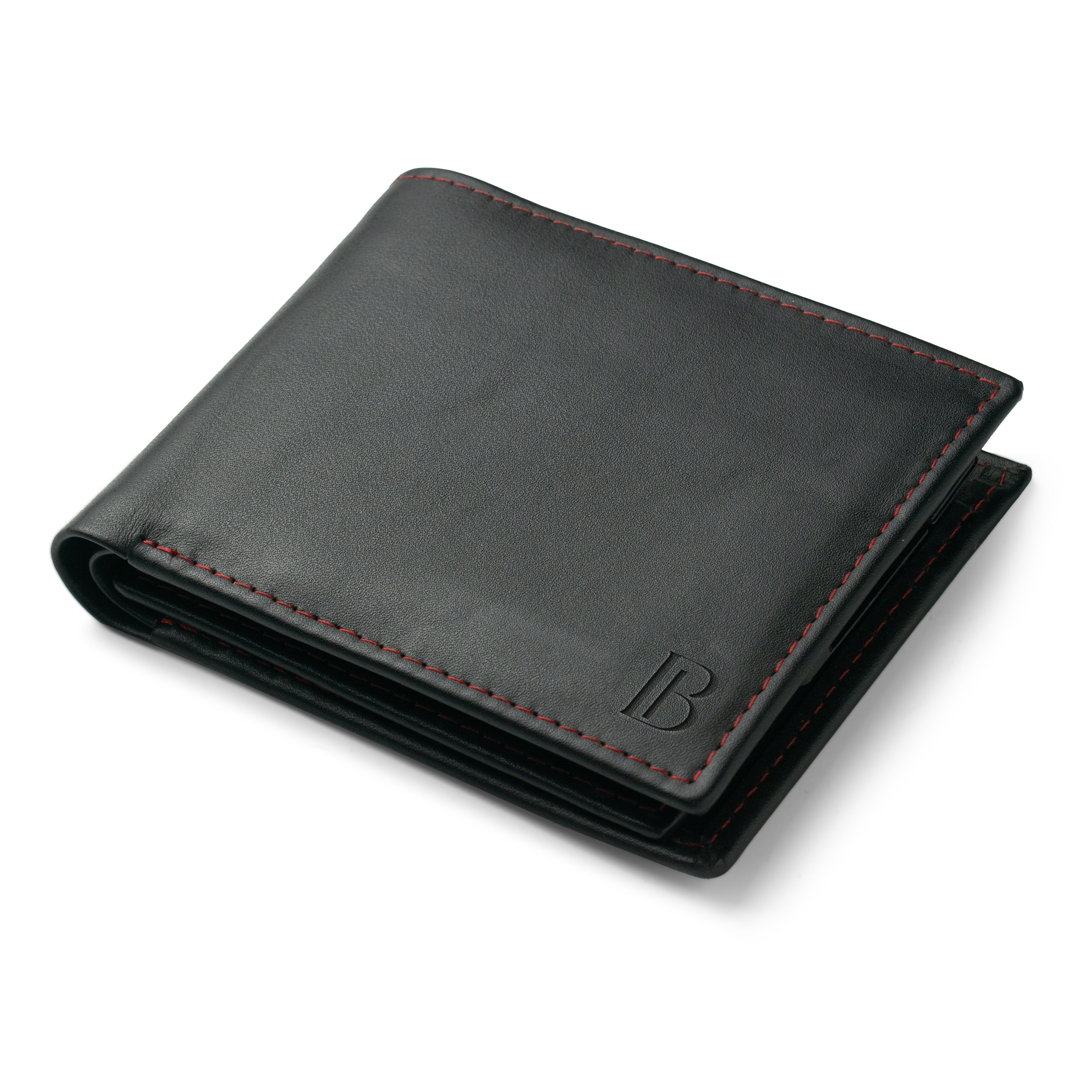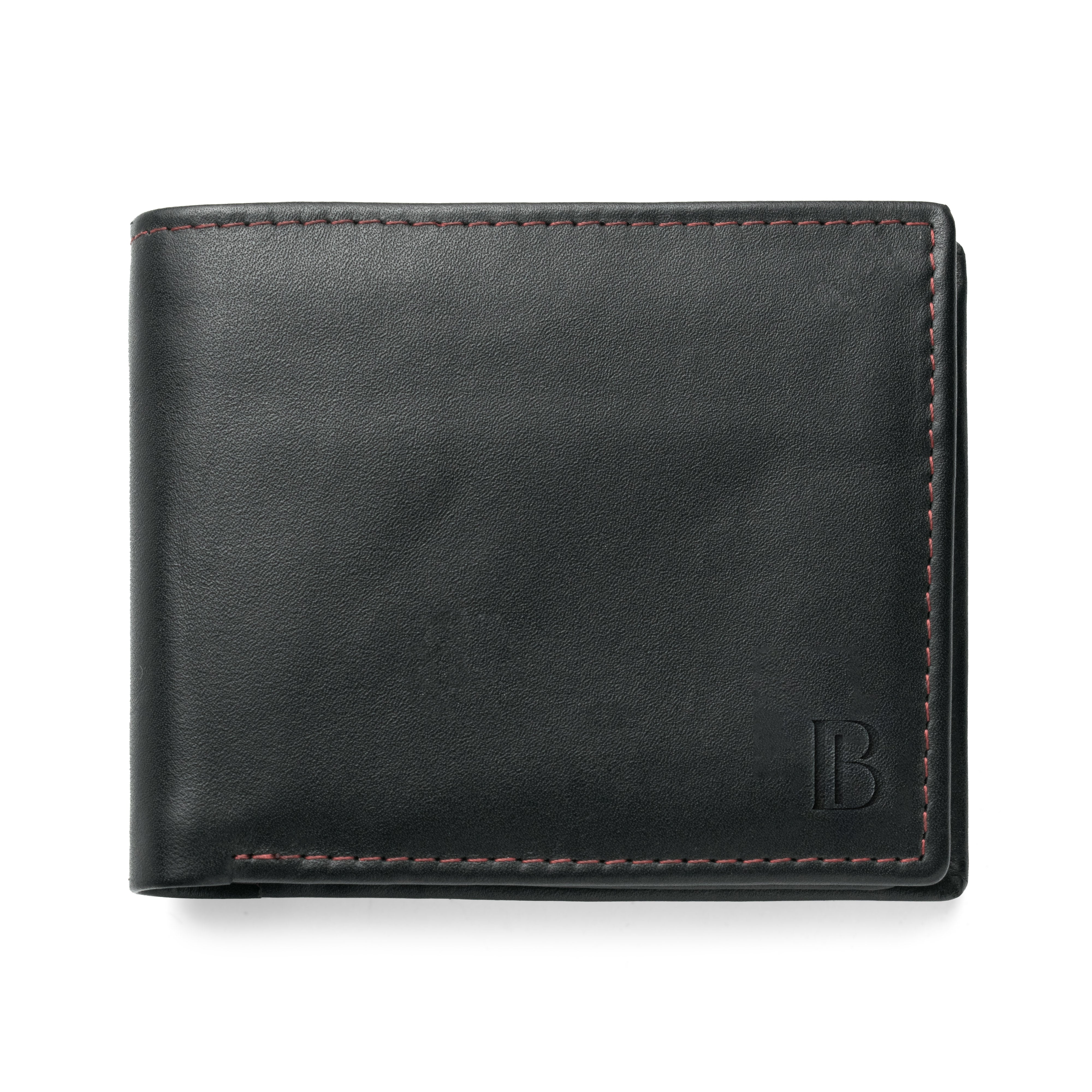 Experience elegance with the JJ Black Leather Bifold Wallet featuring striking red stitching. Crafted to perfection, this sleek accessory offers both elegance and functionality. With its slim design and ample storage, it's the ultimate choice for the modern man seeking sophistication at an unbeatable price. Discover the best in black leather wallets today.