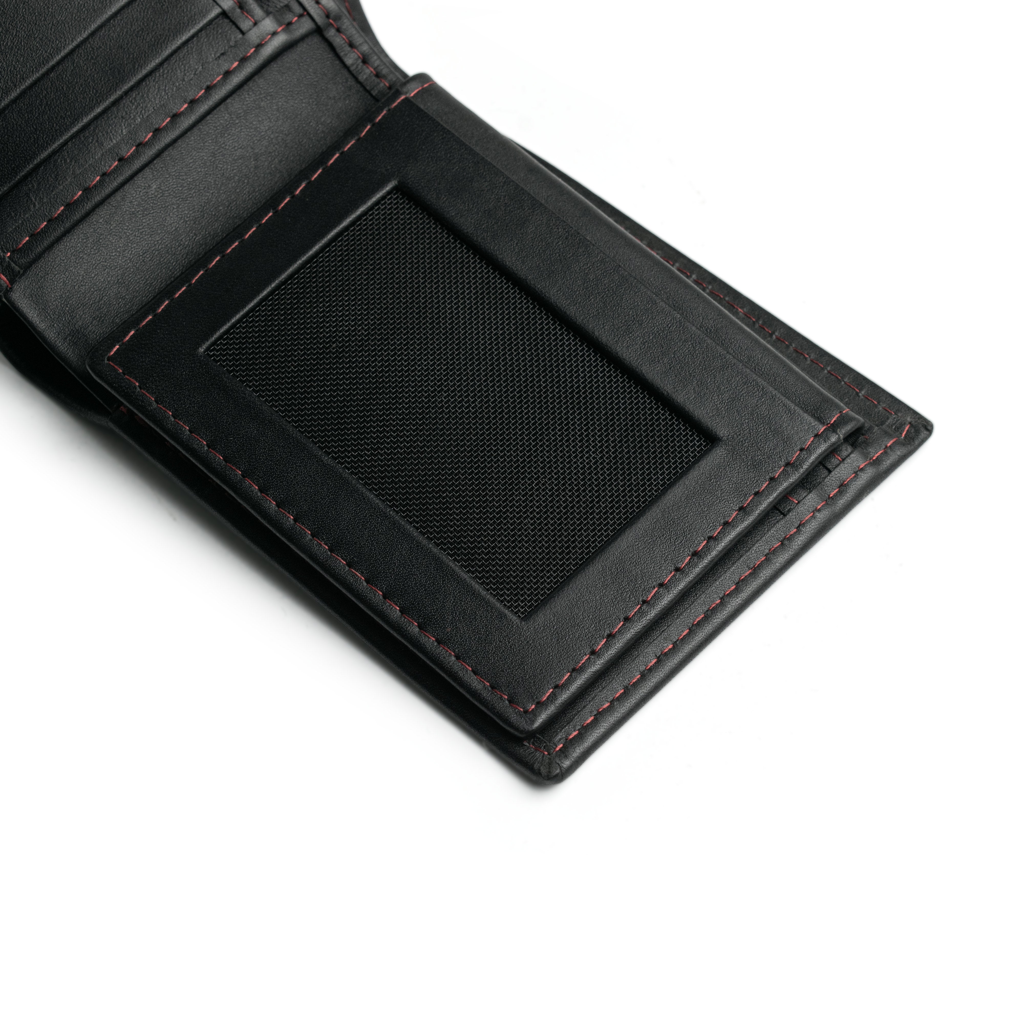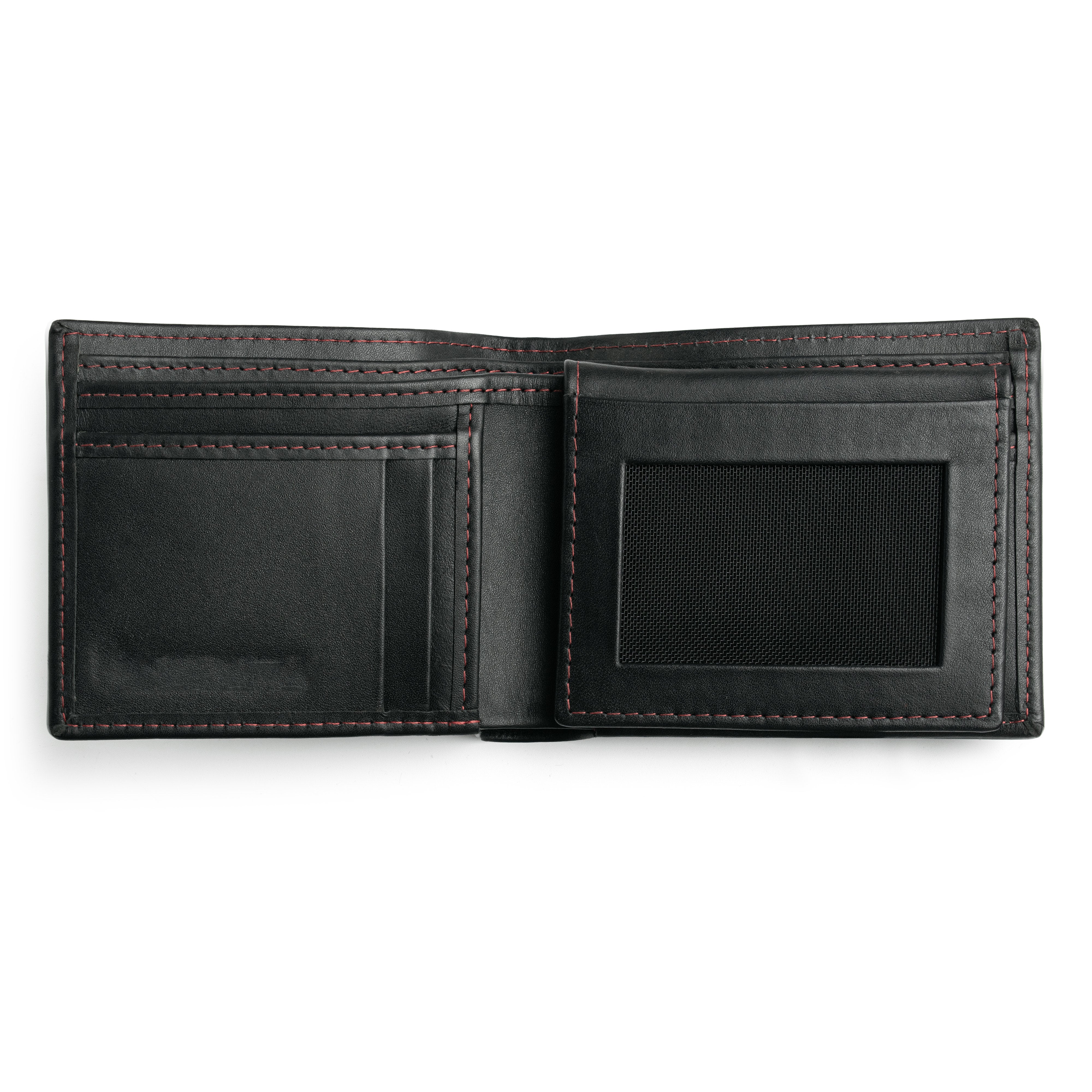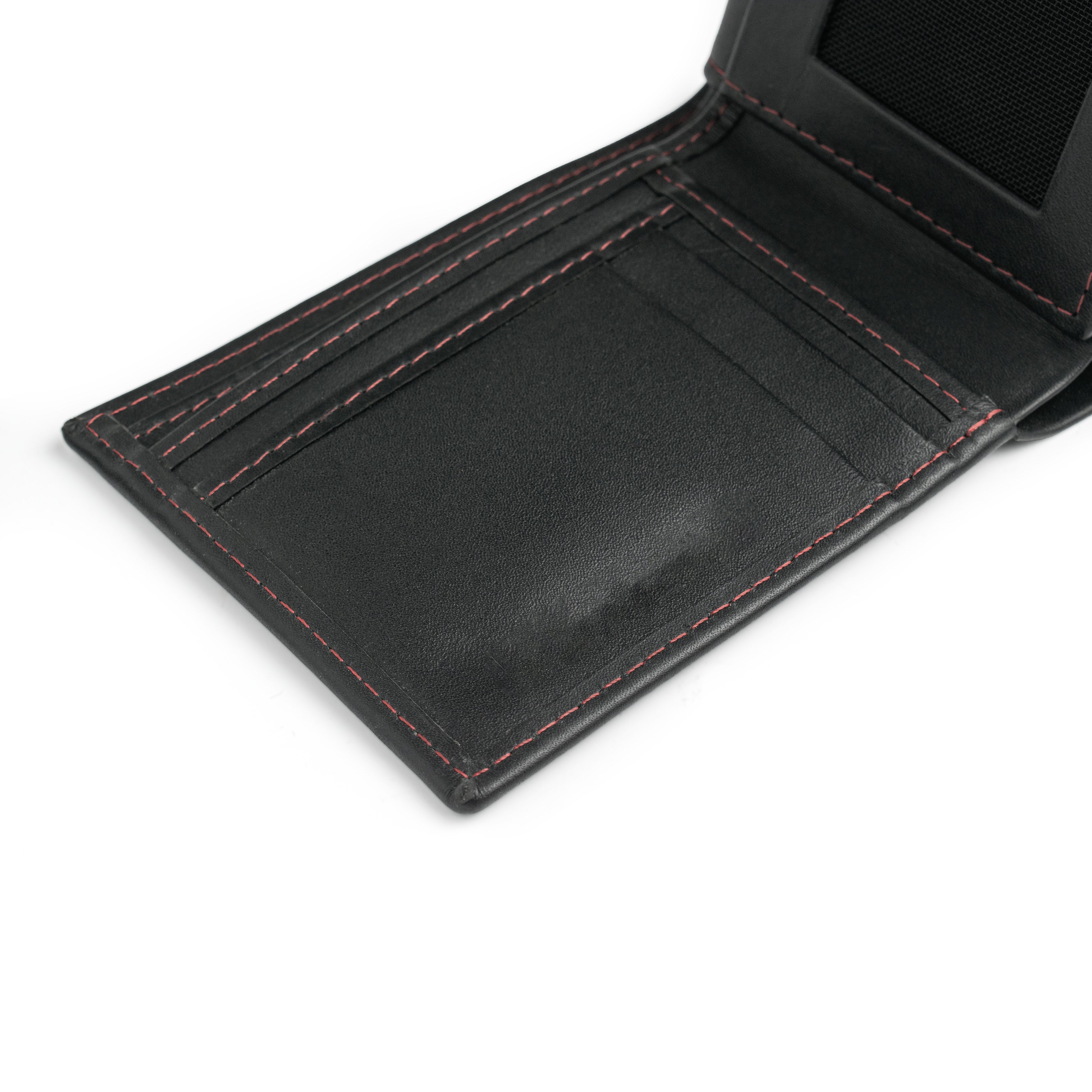 Experience elegance with the JJ Black Leather Bifold Wallet featuring striking red stitching. Crafted to perfection, this sleek accessory offers both elegance and functionality. With its slim design and ample storage, it's the ultimate choice for the modern man seeking sophistication at an unbeatable price. Discover the best in black leather wallets today.